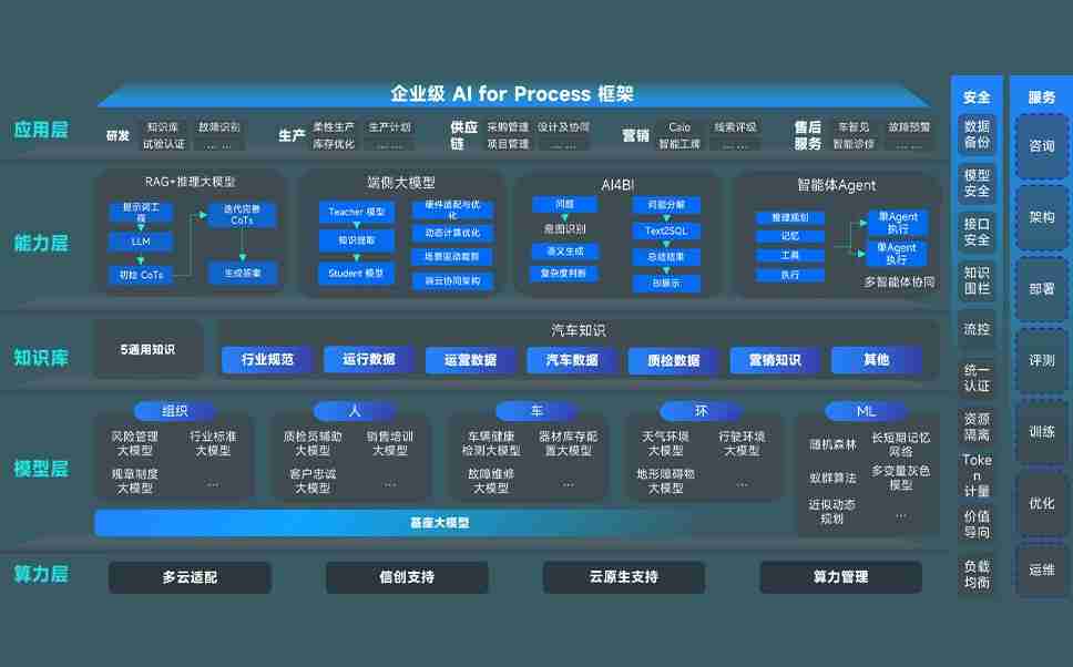 尊龙集团问学智车解决方案是一套基于AI技术的汽车行业智能化系统,,覆盖从底层算力到顶层AI应用的全栈方案。。方案由算力层、、模型层和应用层组成:算力层,,,,方案支持多种一体机配置,,具备云端灵活部署、、、、多云适配以及动态优化计算资源的能力;模型层,,,尊龙集团问学平台版提供了企业级AI应用一站式构建与管理平台,,支持基于后训练强化技术的汽车企业专属模型的训练、、、、评测和运营;应用层,,尊龙集团问学DeepSeek版提供包括超级员工、、智能招采、、、、智能营销、、智能客服、、、AI for BI等一系列解决方案,,,可助力汽车行业实现数字化转型,,让管理更智能、、响应更敏捷。。